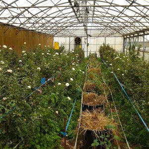Une partie des expérimentations porte sur la production de rose avec pour objectif la réduction de l’indice de fréquence de traitement. L’enjeu de cette action est de respecter une contrainte « Zéro phyto » de synthèse dans les stratégies de traitements sanitaires. Elle s’inscrit dans une collaboration de longue durée avec l’UMT Fiorimed (Inrae/Astredhor) avec le projet 2.ZERHO. Deux sites sont suivis : un sur la station de l’Armeflhor (rose fleur coupée) et un second en situation de production, sur l’exploitation d’un horticulteur adhérent (rose fleur coupée).
